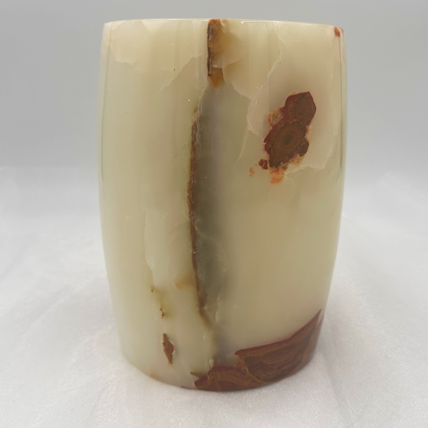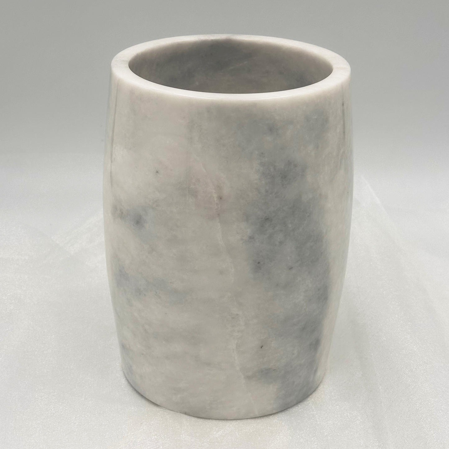 Keep your drinks chilled or your utensils organized with this elegant barrel-shaped ice bucket and utensil holder. With its large capacity and solid stone construction, this versatile piece is perfect for any occasion. Cheers to stylish functionality!